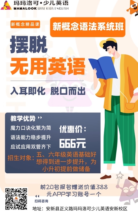 玛玛洛可直播课堂课程再升级,现开设精品小班新概念语法系统班,专门针对五、六年级英语基础好,想做进一步提升和拓展的,拓展词汇量、加深对语法结构的认识、提升写作能力。专业的课程研发团队、专业的资深新概念教学老师、丰富的课后练习资源,为打进初中奥赛班做储备。名额有限,先报先得。