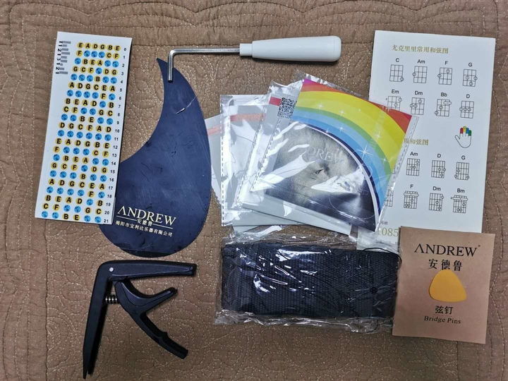 安德鲁吉他,入手时间2个月,全新微损,配吉他袋,琴弦,拨片,变调夹等配套零件。(交易成功,不接受退换)二手交易价格280rmb,可讲价。