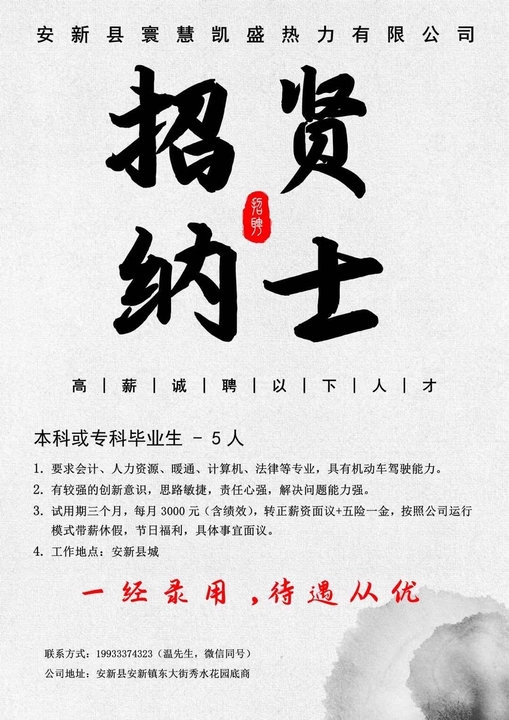 暖通,财务,人资专业,具有驾驶能力者优先