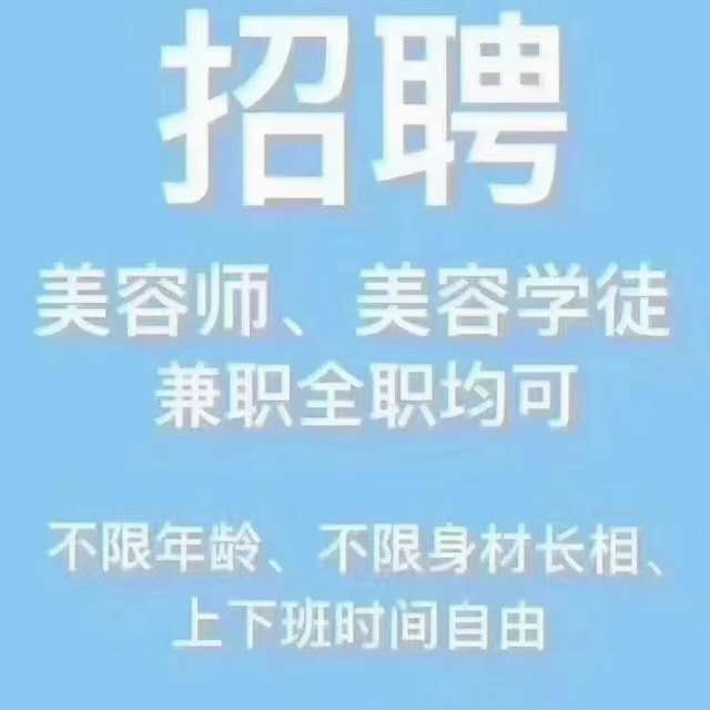 招聘:美容师5名,不限制年龄,不限制长相,有无经验均可,手法简单3到7天可上手服务顾客,可兼职可全职时间自由,工资日结!